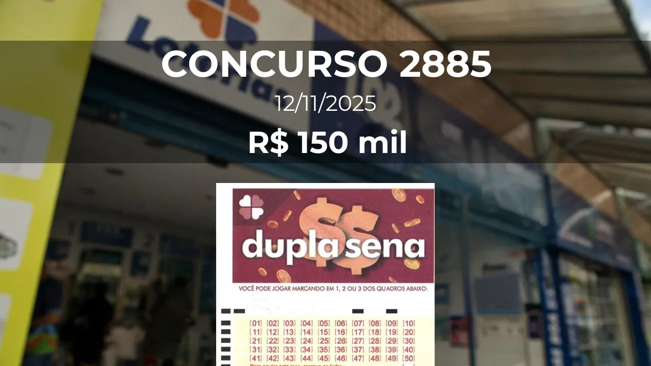 Ninguém acertou as 6 dezenas do concurso 2885 da Dupla Sena, e o prêmio acumulou! A estimativa para o próximo sorteio é de R$ 300 mil.