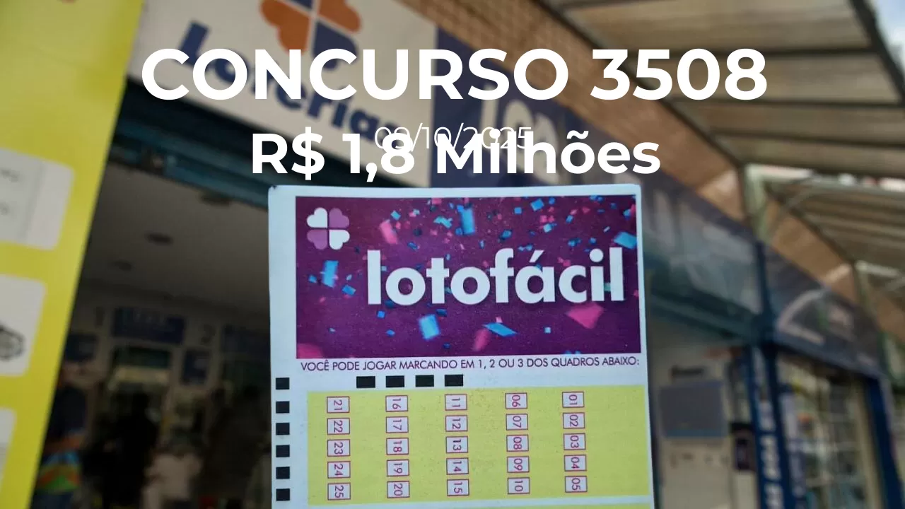 O sorteio do concurso 3508 da Lotofácil, realizado na noite de 09/10/2025, ACUMULOU! O prêmio para o próximo sorteio está estimado em R$ 5,0 Milhões.