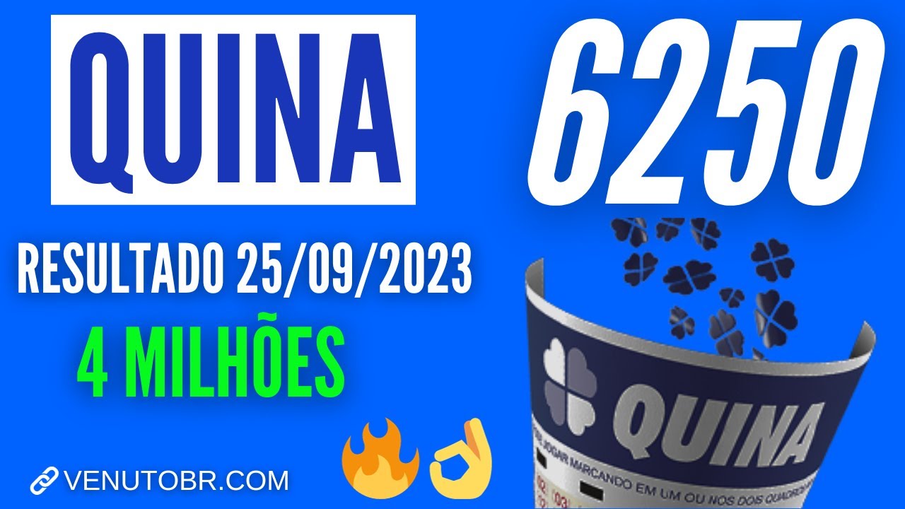 Resultado Quina 6250, confira os números sorteados da Quina dia 25/09, o prêmio é de 4 milhões de reais para investir como quiser.
